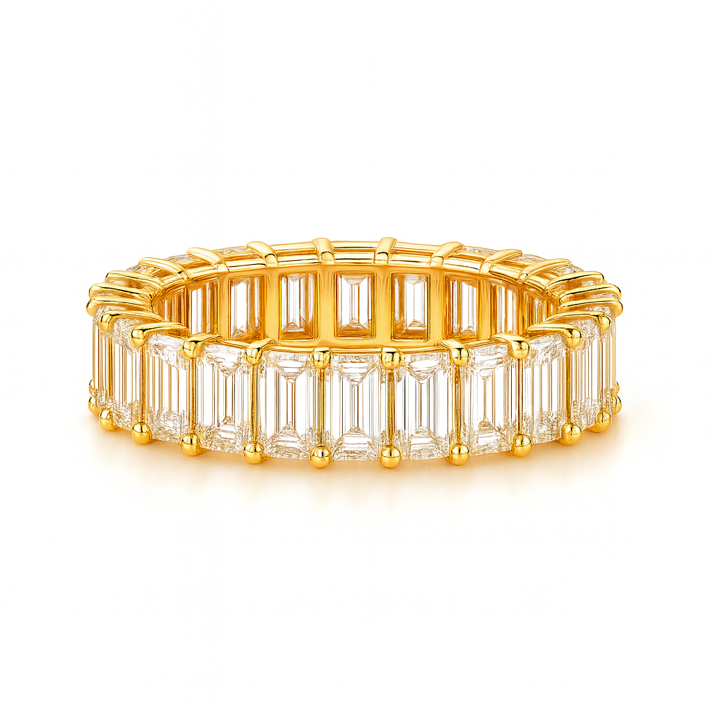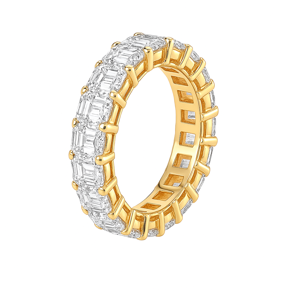 Experience the pinnacle of elegance with this extraordinary 18K Rose Gold Emerald Cut Natural Diamond Band, showcasing a remarkable 6.24CT of premium emerald-cut diamonds. Each diamond is hand-selected in the top color grades D–F with exceptional VVS clarity, ensuring icy-white brilliance and flawless light performance.