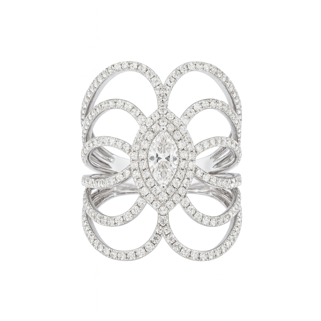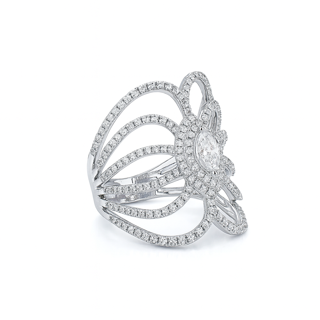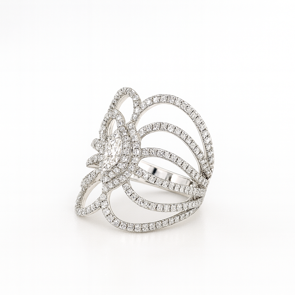 This exquisite Round & Marquise Diamond design from the Vassili Collection blends timeless elegance with refined sophistication. Featuring a natural 0.23CT marquise center diamond paired with 1.13CT of brilliant side round diamonds, the piece shines with exceptional sparkle and graceful symmetry. Crafted in luxurious 18K White Gold, this style is perfect for those who appreciate delicate artistry and high-end craftsmanship in fine jewelry.